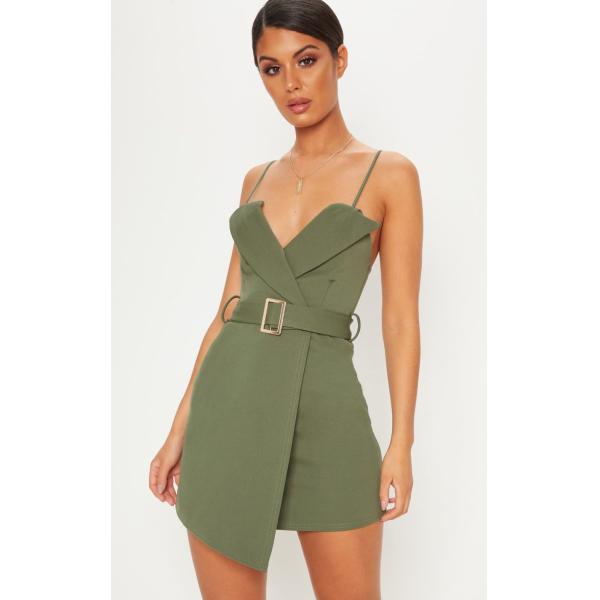 | Product name: | Khaki Tux Detail Belted Wrap Bodycon Dress |