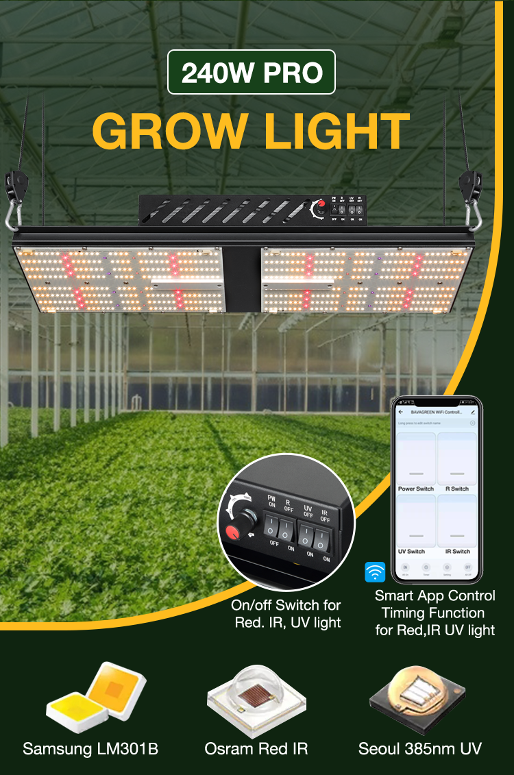 BAVAGREEN 240w LED Grow Light run 50% less power than the HPS or CMH .more harvest and higher yield