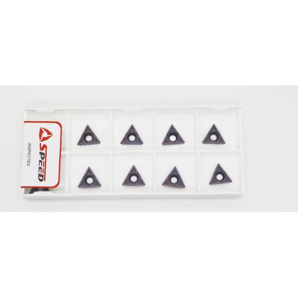Our TCMT tungsten carbide Turning Inserts is made of imported base material with advanced high precision, which enhances the quality of the blade, high hardness, good ductility, high finish, thick coating, stable performance and improves the processing efficiency. The unique coating process, fine and smooth, no drip marks, reduce surface friction, so that the cutting resistance is smaller. The high heat resistance and cobalt rich gradient structure cemented carbide matrix makes TCMT tungsten carbide inserts have a series of excellent properties such as high hardness, wear resistance, good strength and toughness. The TCMT blades are sintered at 5000 ℃ to remove impurities, and sprayed by 1000 ℃ stress accumulation. The unique coating process makes the processing more stable, smooth cutting, good chip removal performance, not easy to produce chip buildup, and the processing surface has good smoothnes. And the TCMT carbide inserts are sharp and thick, so that the cutting speed is fast but not easy to break. It has wide range of application, applicable to step surface processing, model profiling processing, grooving cutting, slope processing, and could to be processed alloy steel, soft steel, carbon steel, medium steel, stainless steel, cast iron, titanium alloy,