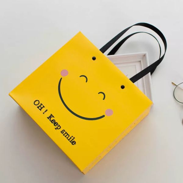 Design smile face color luxury gift custom t-shirt clothing shopping packaging paper bag with handle