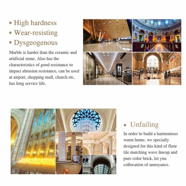 Marble: used in hotels,exhibition halls,theaters,shopping malls, libraries, airports, stations and other public buildings within the interior walls, to face, railings, floors, windowsill, desk, elevator door face finishes